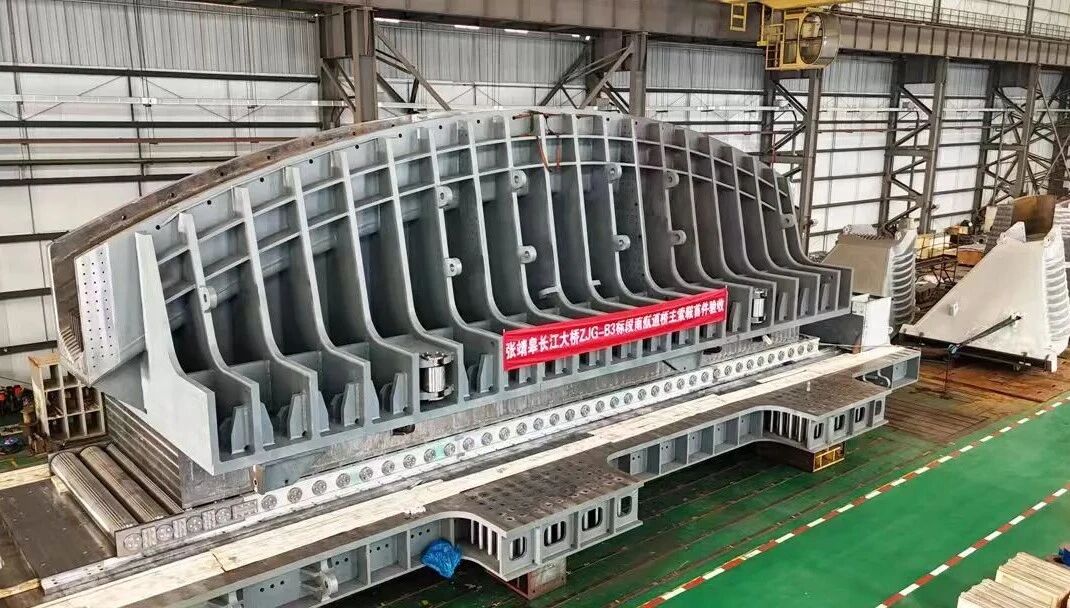 公司突破了高硬度承板淬火、加工等核心制造工藝瓶頸。通過精密的熱處理控制和加工技術,使產品關鍵承力部件獲得了極高的硬度、耐磨性與穩定性,在張靖皋長江大橋南航道橋自平衡主索鞍上得到應用,為橋梁索鞍的質量穩定性提供了重要保障,展現了公司在超大型復雜結構索鞍領域的技術科研與制造能力。